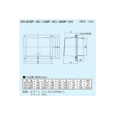 日本キヤリア/旧東芝 換気扇 システム部材 長形パイプフード 【DV-072P】 φ75用 樹脂製(ガラリ付) [DV-072P]